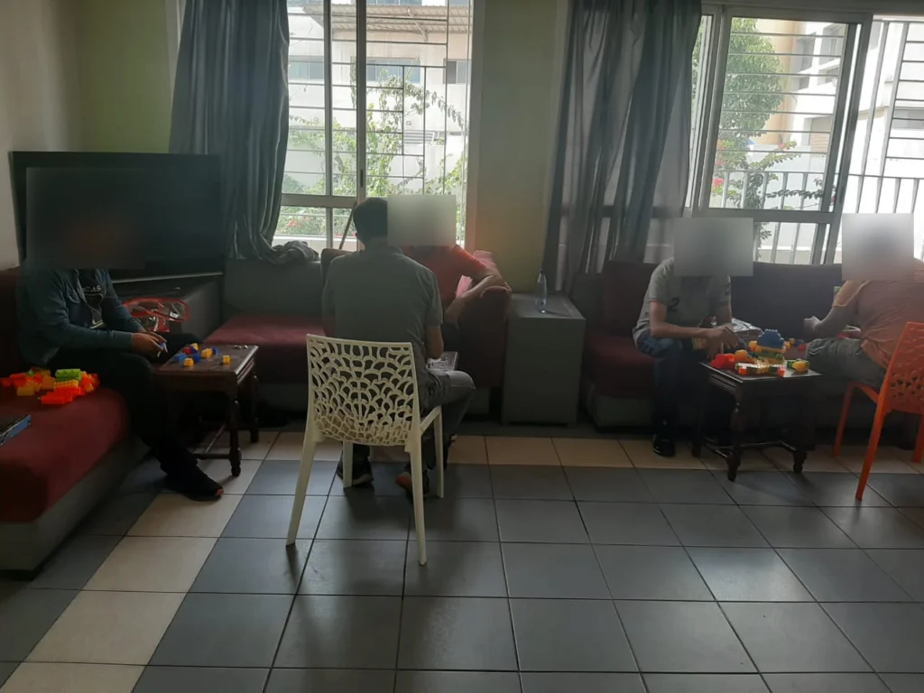 Et afin d’apprendre de manière ludique, ils jouent ç des jeux de société pour développer la mémoire (Babyfoot, puzzle, jeu de carte, dames…etc). Ils font également de l’entretien et nettoyage, lavent la vaisselle et rangent la salle (apprendre l’ordre).